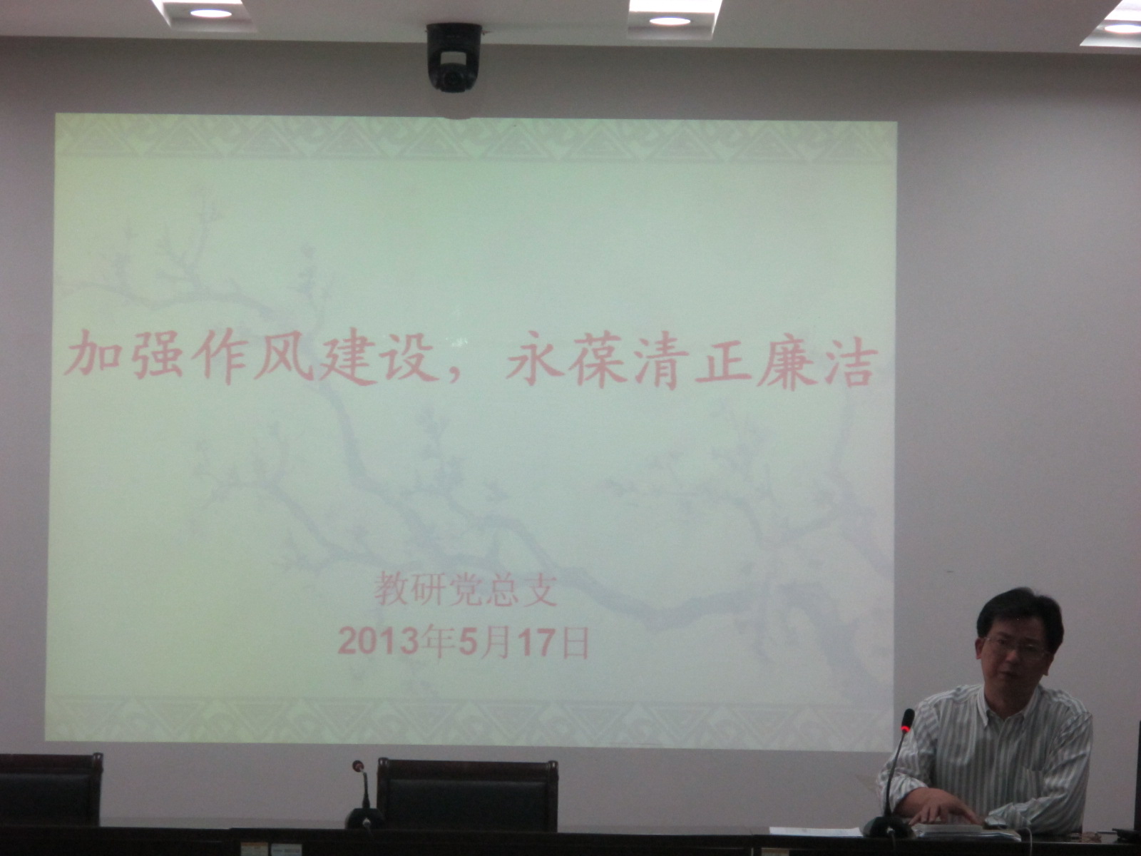 5月17日下午,教研党总支在学院第三会议室举办廉政教育专题党课。党课的主题是“加强作风建设,永葆清正廉洁”。总支全体党员、干部和入党积极分子参加党课。