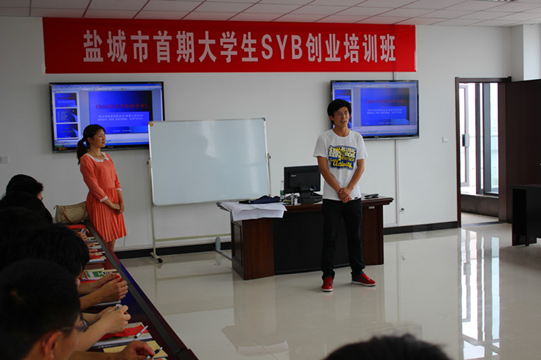 为进一步引导和帮助大学生提高创新创业能力,深入推进学院创业教育工作,我院大学生创业园管委会联合盐城市人力资源和社会保障局于6月18日在创业园四楼举办了盐城市首期大学生SYB创业培训班,共组织了我院60名大学生参加了此次培训。