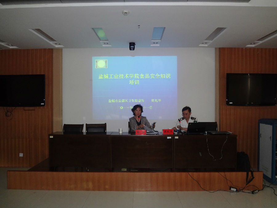 为强化食品卫生安全知识的宣传教育工作,保证师生生命安全,提高食堂超市管理人员和食品从业人员的健康素养,更好地为师生服务,学院卫生所于2013年6月21日下午2点30分邀请盐都区卫生监督所黄兆华科长,在图文信息中心一楼第三会议室做了一次关于食品卫生安全知识的培训,我院后勤管理处人员亦参加了本次培训。