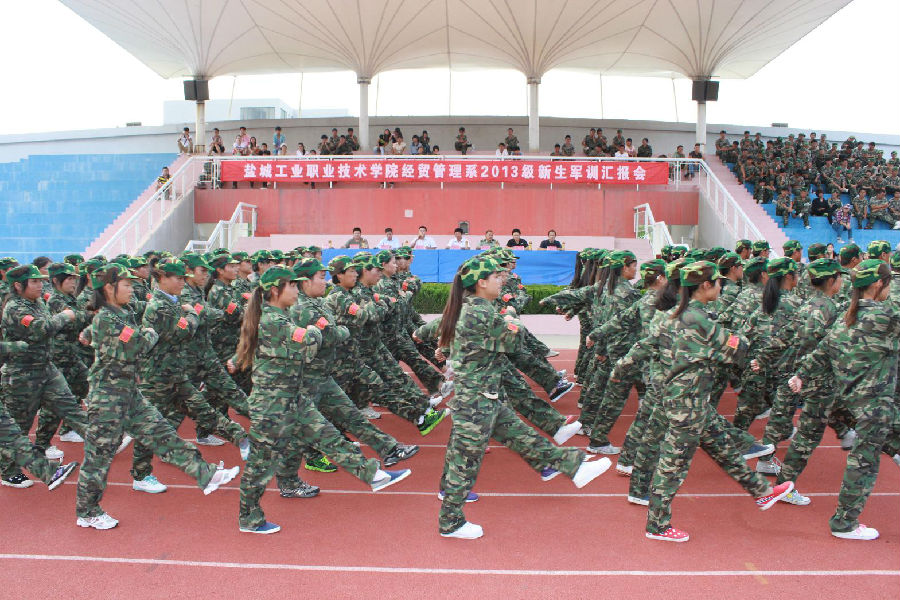 经过艰苦训练和军事化管理的洗礼,9月19日下午,经贸管理系2013级新生在操场举行了精彩的会操表演。学院副院长刘必千,军训团团长射阳海防营承训教官蔡九焕,人武部部长沈长生,团委书记陈杰,经贸管理系副主任李荣道、李中华、徐宏桂和经贸系各班班主任老师共同观看了会操表演。大会由李荣道主持。
