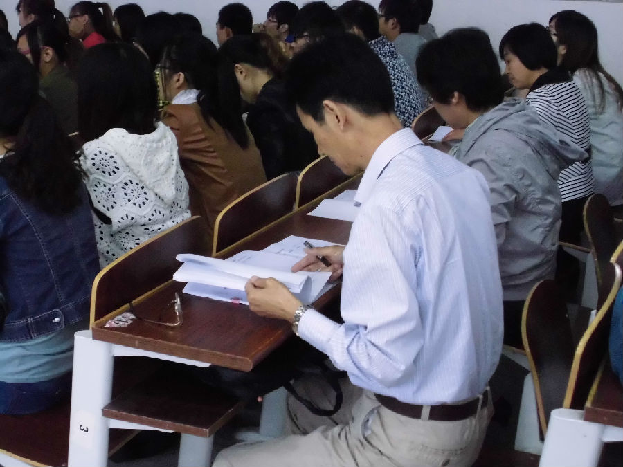 9月28日上午10点,预评估专家金万祥教授在染整实训中心306一体化教室进行了随堂听课,听取了染整技术教学团队封怀兵老师讲授的《印花技术》课程,参与听课人员还有轻化工程系副主任刘德驹,课程团队成员李萍、吴焕岭、曾春梅、张艳、李明、谢佩。