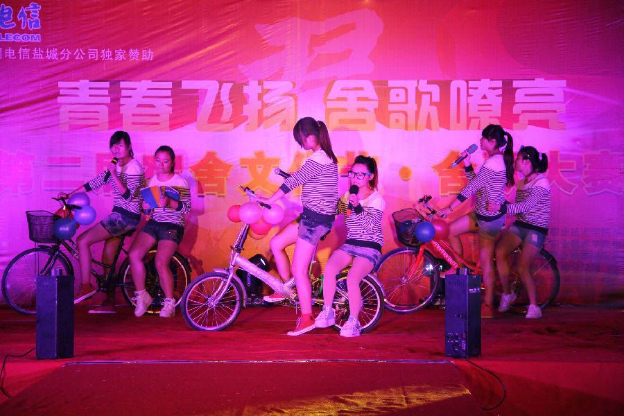 10月19日晚6:30,第二届宿舍文化节“青春飞扬、舍歌嘹亮”舍歌大赛在北篮球场顺利举行。学院副院长孙卫芳、学工处处长沈长生、中国电信盐城分公司主任唐飞燕出席了比赛,院团委书记陈杰、宣传部副部长杨娟、发改办副主任冯晓峥、财务处副处长周旭芳、关工委委员江志学老师担任此次比赛的评委。副院长孙卫芳为大会致辞,她指出,这是一次展示风采、凝聚人心的比赛,也是我院校园文化建设的一道靓丽风景线。并希望同学们通过本次舍歌比赛,能够更好地增进同学情谊,营造良好浓郁的宿舍文化氛围。