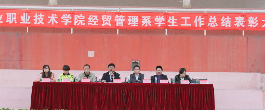 10月22日下午4时,经贸管理系2012-2013学年第二学期学生工作总结表彰大会在学院操场召开。学院副院长刘必千,经贸系党总支副书记、副主任李荣道,副主任李中华,副主任徐宏桂出席了大会。各年级辅导员、班主任老师和经贸系2011、2012、2013级全体学生参加了会议。大会由徐宏桂副主任主持。