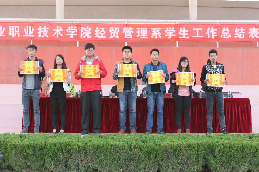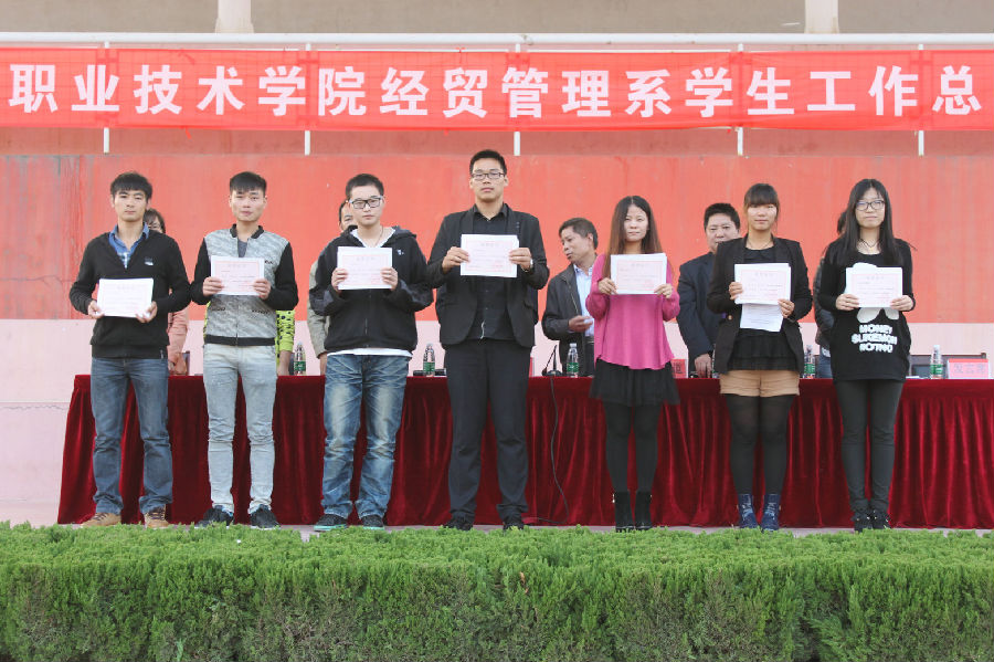 李中华副主任宣读了《盐城工业职业技术学院关于表彰2012-2013学年第二学期先进集体和先进个人的决定》,《经贸管理系关于表彰2012-2013学年第二学期优秀学生干部的决定》,《经贸管理系关于表彰第一届田径运动会先进集体和先进个人的决定》,并进行了大会颁奖。优秀学生代表,会计1202班吴月同学进行了大会发言。