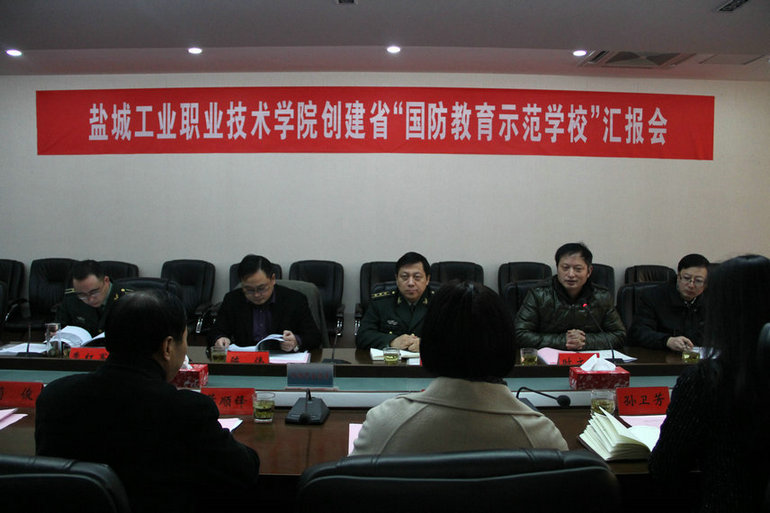 近日,由江苏省国防教育办公室专职副主任徐滔任组长的江苏省首批“国防教育示范学校”检查专家组来到我院,检查评估学院国防教育工作。院党委书记张荣华、党委副书记董顺锋、副院长孙卫芳出席了汇报会。会议由省教育厅体卫艺教处副调研员时文山主持。