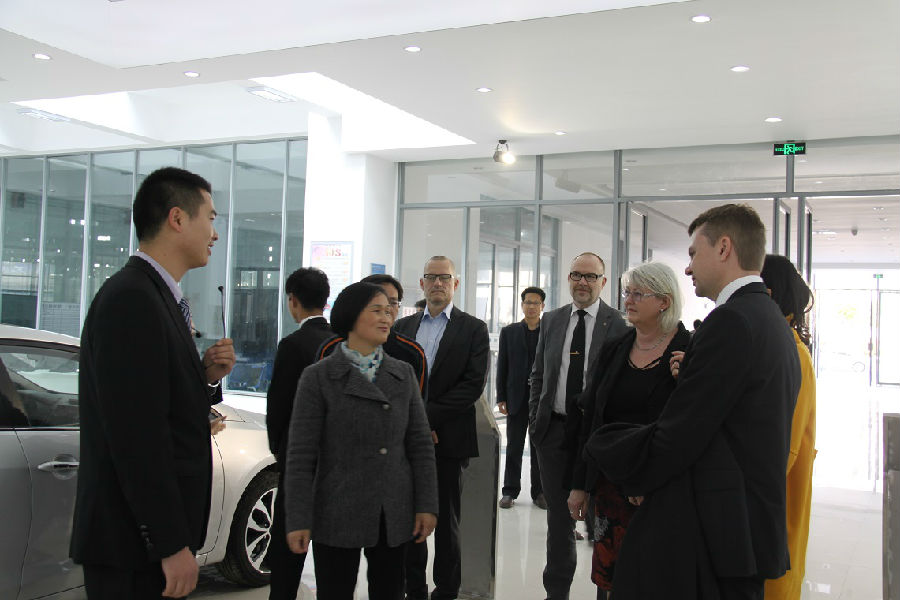瑞典宝莱市政府代表团先后兴致勃勃地参观了校园、纺织服装实训基地、江苏省生态纺织工程研发中心、生态染化料研发中心、工业中心(汽车、机电实训中心)和江苏省大学生创业示范基地。参访团对我校美丽的校园给予了赞赏,肯定了我校的“校企合作、工学结合”的办学之路,并对我校所取得的办学特色和办学成果给予了关注。