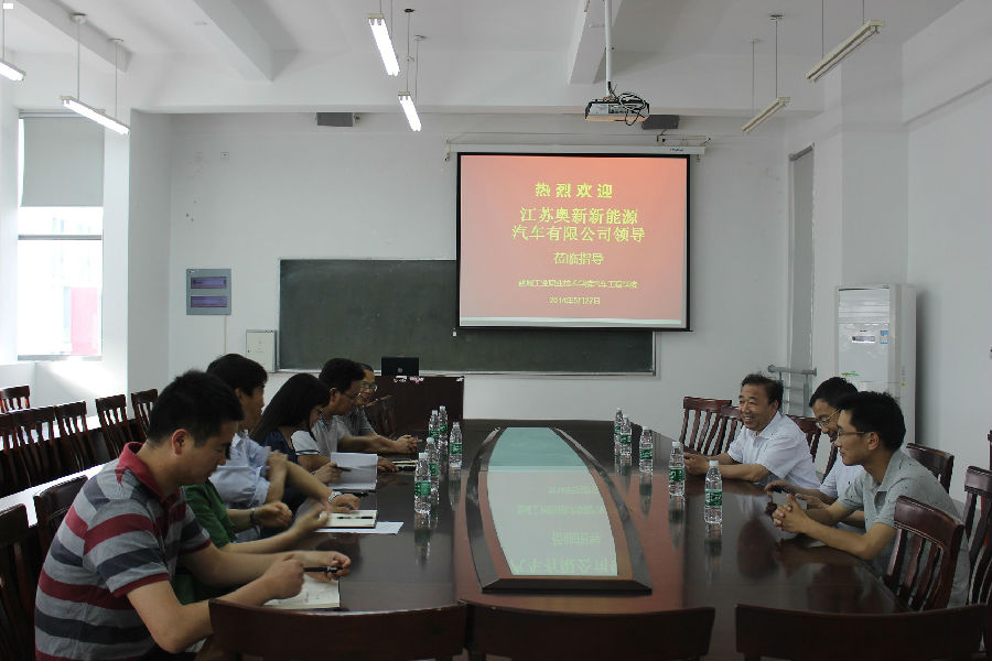5月27日下午,江苏奥新新能源汽车有限公司副总经理胥崇仁一行来我校汽车工程学院洽谈校企合作事宜。汽车工程学院院长苏宏林、副院长钱宗仁、杨彦及汽车、机械等教学团队负责人参加了交流工作。