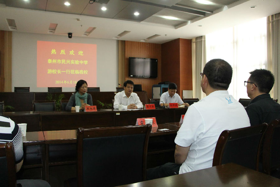 6月18日,泰州民兴实验中学一行10人在游庆红副校长的带领下对我校进行交流访问,财务处副处长周旭芳进行了接待,招生办孙开进主任就我校今年的招生政策作了讲解,学校副院长瞿才新就校校合作、基地建设进行了交流。游校长一行重点参观了我校学生实训工厂、汽车4s店、电子实验室、数控机床、纺织实训等高科技实训工场。