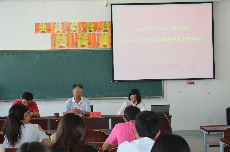 9月7日,纺织服装学院在纺工楼408召开了2014-2015学年秋学期学生干部暑期培训会议。纺织服装学院副院长陈瑜,辅导员张伟、王可,学生会主要学生干部以及2012、2013级各班班长、团支书等参加会议。
