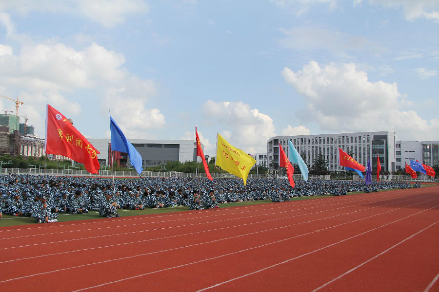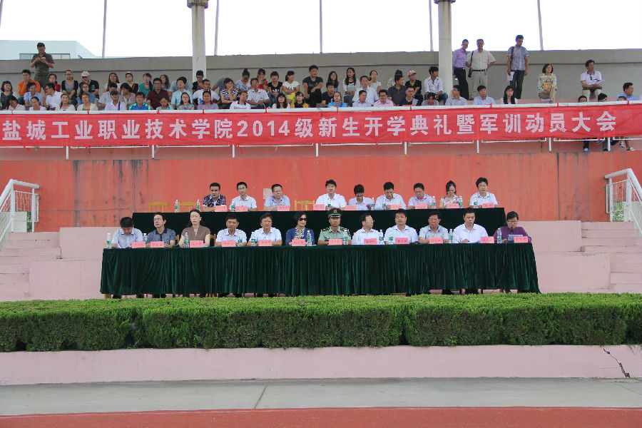 9月14日,学校在运动场举行2014级新生开学典礼暨军训动员大会。盐城军分区射阳海防营卞太桃连长,学校党委书记张荣华,院长姜朋明,党委副书记、纪委书记董顺锋,副院长张林龙、瞿才新、孙卫芳、刘必千出席大会,各院(系)和相关职能部门主要负责同志,辅导员、班主任老师,以及2014级全体新生参加了大会。孙卫芳副院长主持大会。