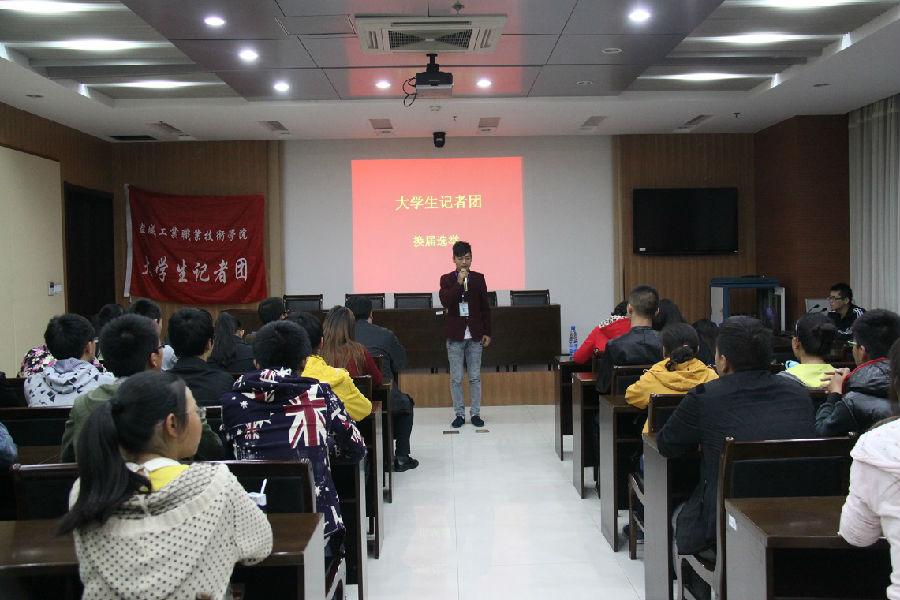 10月16日晚,在图文信息中心第三会议室举行大学生记者团换届选举会议。出席大会的有校党委宣传部部长蔺俊、团委书记陈杰、记者团指导老师陈屈亮,以及全体记者团成员。