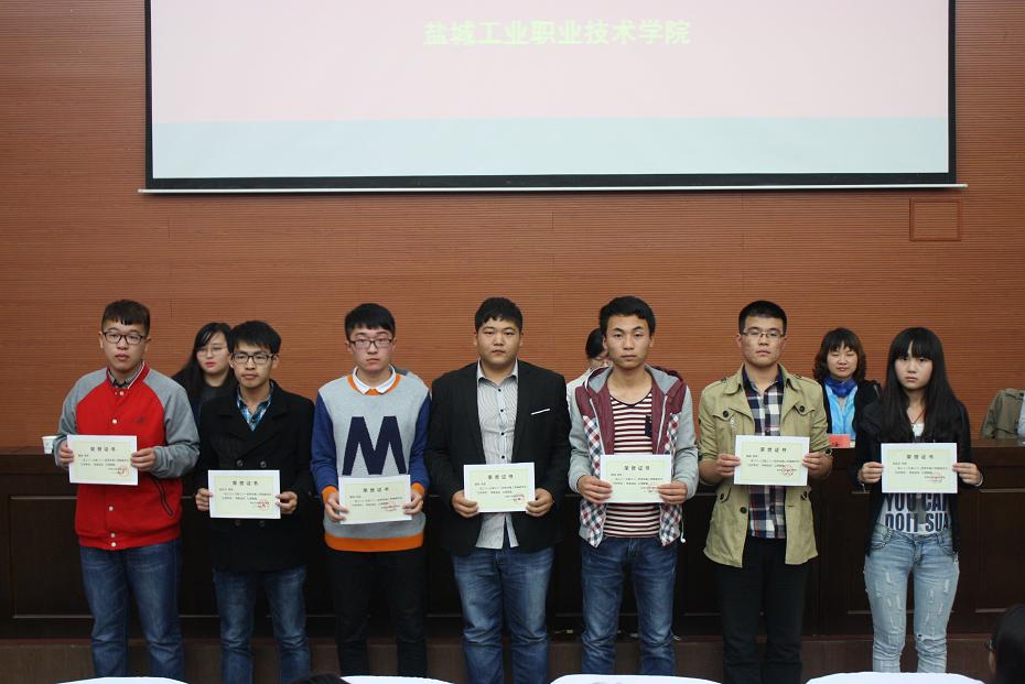 大会在庄严的国歌声中拉开序幕,副院长李明宣读《盐城工业职业技术学院关于表彰2013-2014学年第二学期先进集体和先进个人的决定》,在团总支书记滕飞的主持下,依次为获奖同学颁发三好学生、优秀学干、优秀宿舍、先进集体及奖学金获得者的荣誉证书。孙信德同学代表获奖学生发言。副书记陈洁对本次会议做总结发言,希望本次表彰大会是对全体同学的激励和鞭策,希望同学们以优秀同学为榜样,刻苦学习,奋力拼搏,切实掌握一技之长,真正做到“职业立身,技术报国”,为学校的跨越发展贡献自己的青春和力量。
