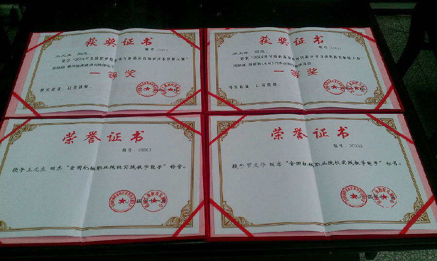 在刚刚结束的由全国机械职业教育教学指导委员会主办的2014年全国职业院校现代制造及自动化技术教师大赛中,我校汽车工程学院罗文华、王元生老师参加的新能源汽车检测与维修、数控铣床装调与维修两个赛项中,分别获得一等奖,被授予“全国机械职业院校实践教学能手”称号,同时报送的《THNEDD-1型电动汽车倒档不运行故障诊断维修》《数控铣床主轴PMC控制》获得2014年全国机械职业教育实践性教学成果三等奖。