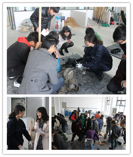 11月19日上午,学校质量管理与评估办公室副主任杜梅手拿课表和听课笔记,悄悄走进创业园101室混凝土实验室。教室内,刘淑芳高级工程师正在进行“混凝土拌合物的和易性测定”的“教、学、做”一体化教学。混凝土搅拌机旁,刘老师边讲解边操作示范,学生紧紧地围绕在四周,认真听讲。谁也没有发现教室内走进了听课老师。10多分钟后,学生散开,进行分组实验,刘老师才发现被听课了,瞬间惊讶后,继续巡回指导学生操作。杜主任被这种新颖、实用的、以实际工作需求为导向的“技能菜单式”教学方式所吸引,情不自禁地融入学生群中,蹲下身子,听老师讲解、看学生操作。课后,杜主任认真检查了教学资料,听取学生的反馈意见,称赞了这次课的课堂教学效果。并对期中教学资料检查、新教学方法、手段运用等方面和刘老师面对面热情交流,热心指导。听课结束后,仓金顺副教授陪同杜主任参观了建筑工程系技能实训中心,并就教师自我能力培养、如何提高课堂教学效果、和“专接本”教学质量控制等方面和杜主任进行深入探讨。