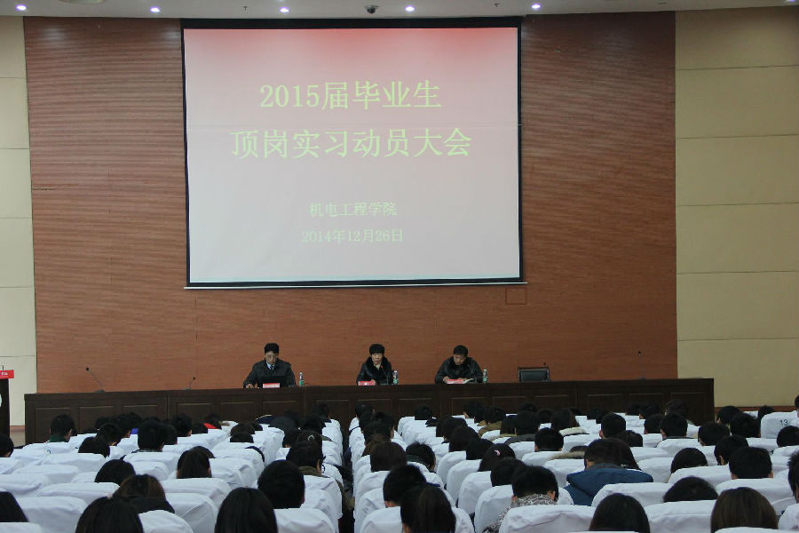 本次动员大会明确了顶岗实习的目的和任务,帮助学生认清了顶岗实习的重要性,树立了顶岗实习的信心,为我院2015届学生顶岗实习的顺利开展、推进学院在校外教学与企业的深度合作奠定了基础。