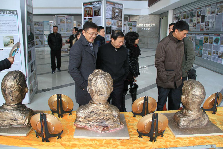 1月9日,学校姜朋明院长、纪委书记董顺锋、副院长张林龙、教务处处长李建国、教务处副处长吴益峰一行来到艺术设计学院参观2015届毕业设计作品展。艺术设计学院副院长陈洁、李明,系主任龚毅、倪勇等老师陪同参观并对艺术设计学院毕业设计情况作了详细讲解。