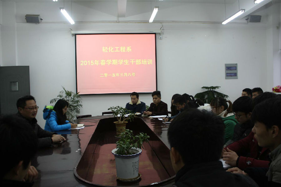 3月8日下午,轻化工程系在305会议室举行了2015年春学期学生干部培训。轻化系党总支副书记、副主任刘德驹,轻化系辅导员顾东雅、程卫华出席了会议,参加培训的主要是轻化系2013级和2014级各班班长、团支部书记和学生会主要干部,会议由顾东雅主持。