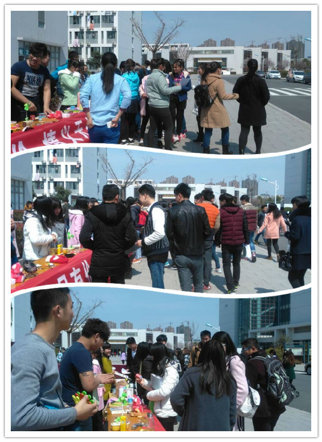 3月25日,由经贸管理学院学生会组织的爱心义卖活动在南食堂前举行。在摊位上摆满同学们为奉献爱心而捐赠的精美物品。义卖活动现场,人声鼎沸,买的、卖的交汇出一曲动听的校园爱心之歌。这次爱心义卖的物品基本售出,所得善款虽不是很多,但收获颇多,不仅体验到一份快乐,更体会到为他人付出而感到精神上的满足。本次义卖的款项都将用于经贸学院的志愿者活动,相信我们点点滴滴爱心将汇聚成一股股强大的暖流,流向每一位得到帮助的人。