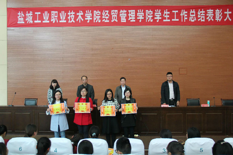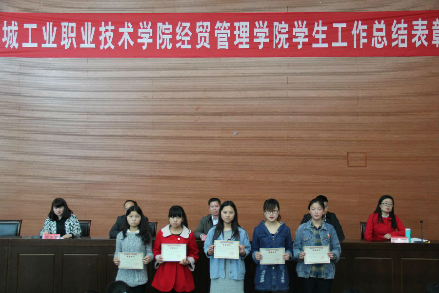 周荣虎宣读表彰决定和获奖名单。学院领导分别为受表彰的集体和个人进行颁奖并合影留念。随后,学生代表会计1314班陶陶同学作获奖发言。