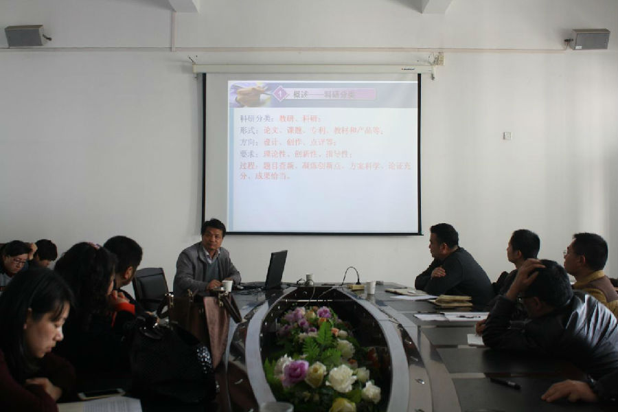 瞿院长从科研的分类入手,分析了教研与科研的区别和重要性。围绕如何从借鉴中寻找创新点,如何从热点中寻找研究课题,如何从教学实践中挖掘研究对象,如何参考文献资料进行科学研究4个方面进行了详细论述,并对科技项目、教改项目的申报侧重点进行了讲解,以我校申报的课题和发表的文章为例现场点评,提出了意见和建议。瞿才新副院长用朴实的语言,理论联系实际的讲解给艺术设计学院全体教师留下了深刻的印象。最后,姜为青对本次讲座进行了总结,他代表艺术学院全体教师对瞿院长的精彩讲解表示衷心感谢。