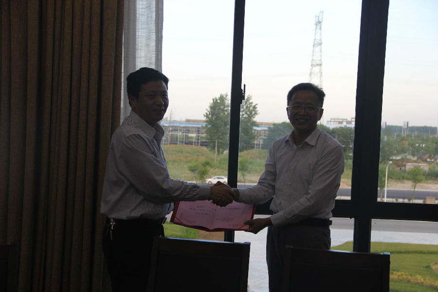 授牌仪式上,王志成总经理介绍了公司的发展概况和校企合作意向,对机电学院首批一个班实习学生的工作情况给予充分肯定。学院院长姜朋明作了热情洋溢的讲话,他表示要加强与企业的合作联系,通过校企合作共同培养人才、共同进行科研工作。姜朋明院长为王志成总经理颁发企业兼职教授聘书,并向公司授予“盐城工业职业技术学院校企合作基地”铜牌。
