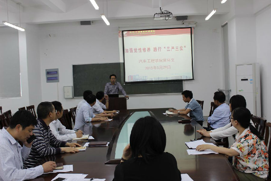 5月29日下午,在汽车工程学院310会议室召开了“三严三实”专题教育会议,汽车工程学院党总支书记苏宏林结合学校党委部署要求,为学院教职工讲了一堂主题为“加强党性修养、践行三严三实”的党课。为时1小时的党课,使汽车工程学院全体教职工感触颇深、受益匪浅,纷纷表示在今后的育人工作中认真践行“三严三实”,努力为学校发展做积极的贡献。