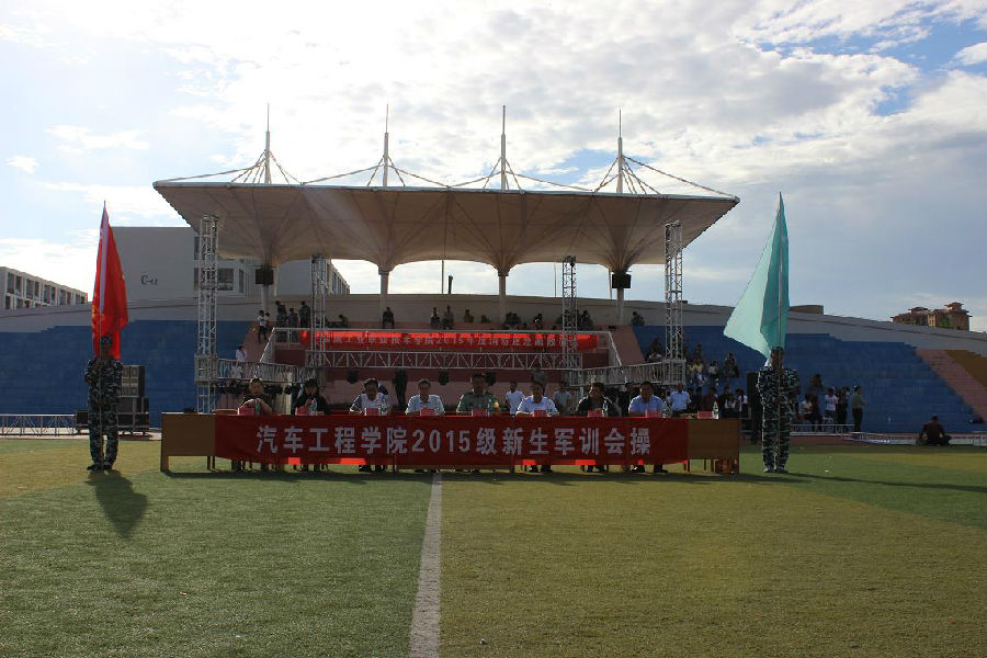 9月27日下午,汽车工程学院2015级新生军训举行会操比赛。射阳海防营军训团团长凌森,学校军训团政委、学工处处长、人武部部长沈长生,学工处贲能军老师,汽车工程学院党总支书记、院长苏宏林等出席了会操比赛。