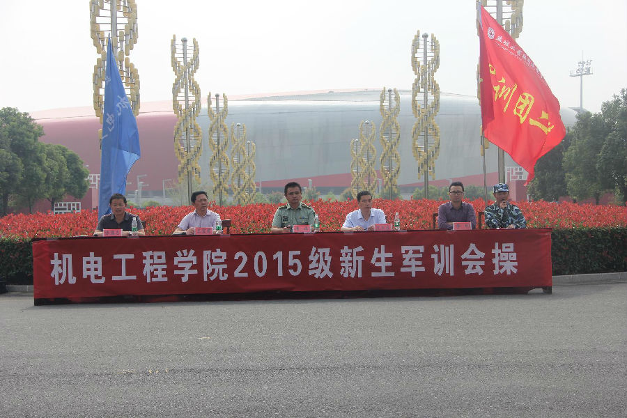 9月26日上午,机电工程学院2015级新生军训汇报表演在学校南门举行。新生军训承训部队射阳海防营政委、军训团团长凌森,学工处处长沈长生、机电工程学院党总支副书记、副院长王宜君,机电工程学院副院长张国志等以及2015级全体新生出席了本次大会。大会由副院长张国志主持。