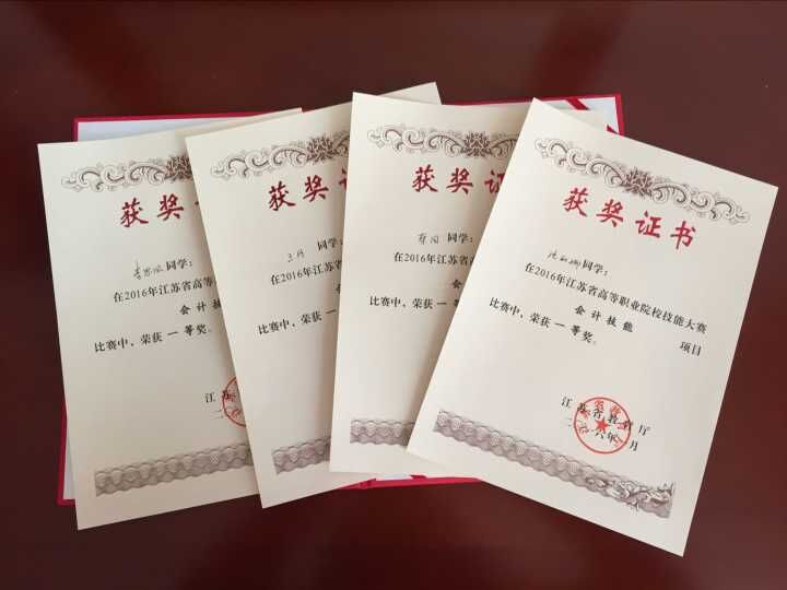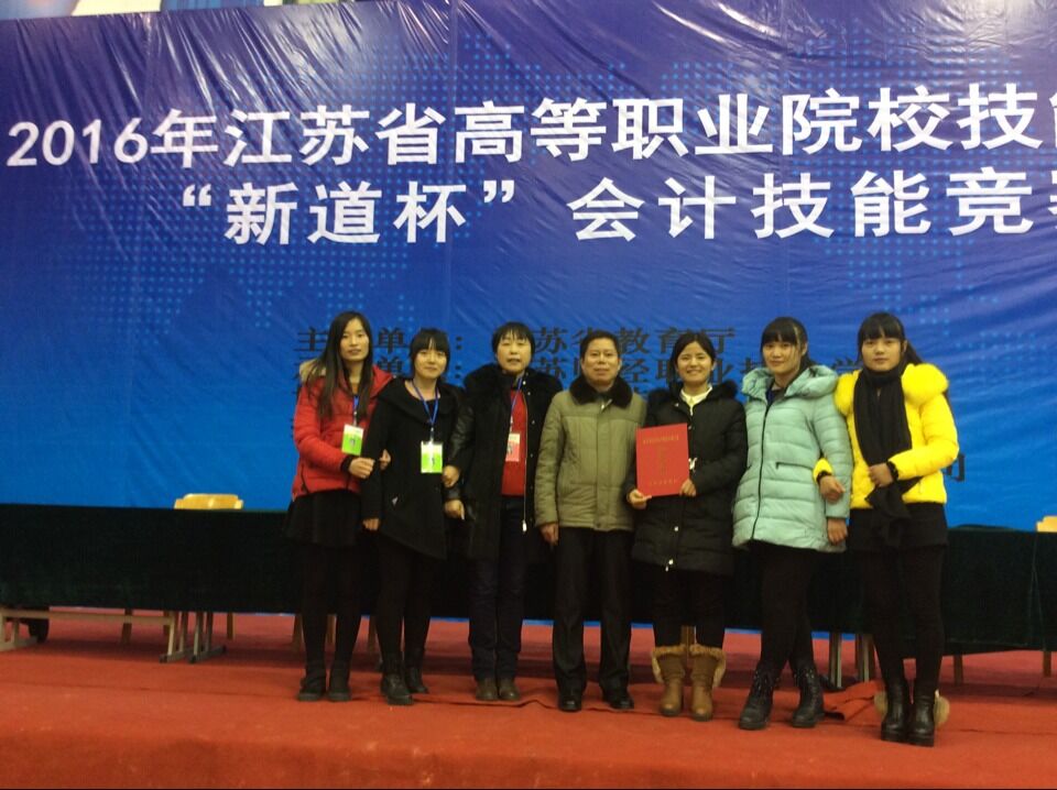 1月8日,2016年江苏省高等职业院校技能大赛“新道杯”会计技能竞赛在江苏财经职业技术学院举行。在经贸管理学院会计系吴雯洁、丁金兰两位老师精心指导、周密部署下,我校会计1311蔡园、李思凤,会计1313王丹、会计1315沈丽娜4名同学,凭借扎实深厚的专业功底、准确规范的操作技能、高度默契的配合协作,沉着稳定地与各校会计高手激烈角逐6个小时,在“指间较量”中脱颖而出,以总分702.91分(第4名)的成绩荣获团体一等奖。这是我校推行技能菜单教学改革的成果。本次大赛共有52支代表队的208名选手参赛。赛事由会计业务手工处理和会计业务信息化处理两个环节组成,竞赛时间各为3小时。上午的会计业务手工处理环节,采用团队竞赛穿插个人岗位专项技能赛的方式进行,一个参赛队模拟一个财务科,四名选手分别担任出纳、成本会计、总账会计和会计主管4个岗位角色,各司其职、协调配合,既考核个人职业核心能力,又考核团队协作能力。下午的会计业务信息化处理环节,采用单人单机独立竞赛方式,考核内容包括系统管理与基础档案、总账统计、薪资管理、会计报表编制与财务分析等。
