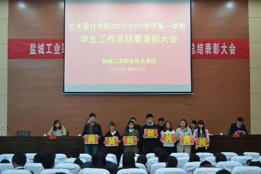 4月20日,艺术设计学院2015-2016学年第一学期学生工作总结表彰大会暨学风建设动员大会在学校学术报告厅召开,校学工处处长沈长生,艺术学院党总支书记姜为青、副书记范友芳、副院长李明、全体班主任老师等出席会议。会议由团总支书记滕飞主持。