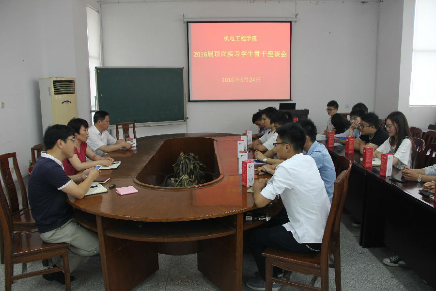 6月25日,在机电学院301会议室,机电学院组织顶岗实习学生座谈会。副院长王宜君、姚月琴、陈杰以及近20名顶岗实习学生参加了本次活动。师生在轻松和谐的氛围中进行了深入的交流,同学们反映企业非常重视勤奋、积极、好学、诚实的基本素养,专业能力与个人素质非常重要。在外资企业与民营企业的同学,在专业的宽度与深度方面还出现了不同的意见。