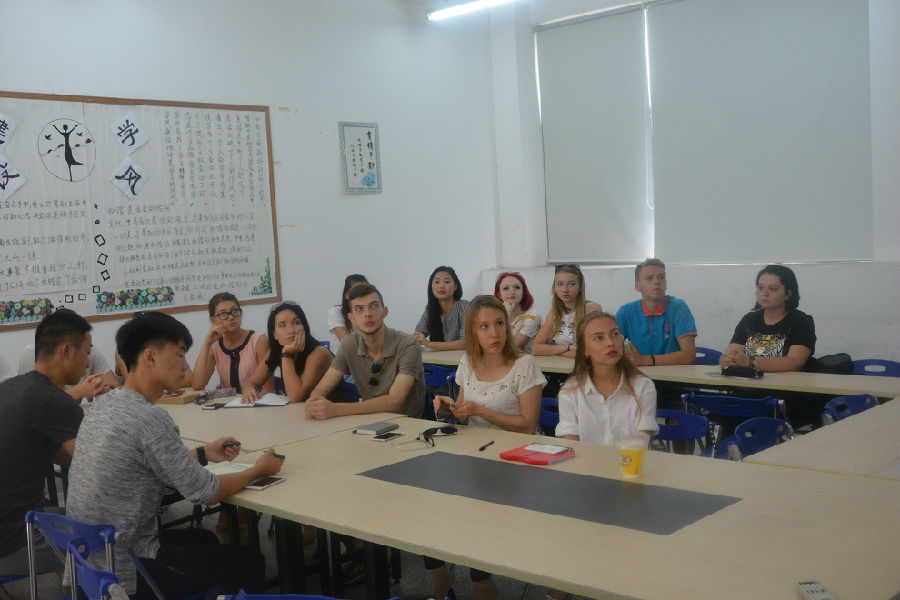 首先通过视频向乌克兰同学展示中国的名胜古迹:故宫、颐和园、八达岭长城等标志性建筑犹如一幅画卷徐徐展开,随后视线转向西藏布达拉宫、西安秦兵马俑、广西桂林山水、南京中山陵等,无一不吸引着乌克兰同学的目光。接着大家还一同观看了短片《苗族梯田》,片中苗族同胞勤劳朴实的生活作风深深感染了乌克兰同学。