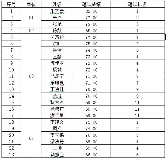 根据《盐城工业职业技术学院2021年公开招聘专职辅导员公告》要求,学校于2021年6月5日组织了公开招聘笔试考核。现将进入面试考核的应聘人员的成绩公告如下: