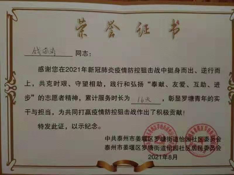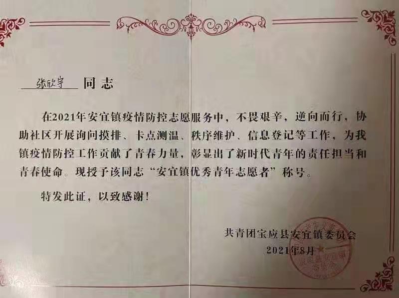 暑假期间,潘海鹏等多位同学闻令而动,冲锋在前,与疫情赛跑,积极参与卡口值守、人员信息摸排、宣传防疫知识,提供居家隔离群众服务等。他们任劳任怨,“疫”无反顾,用自己的实际行动树立起标杆,作出表率,以认真负责的工作态度获得了当地群众的一致好评。