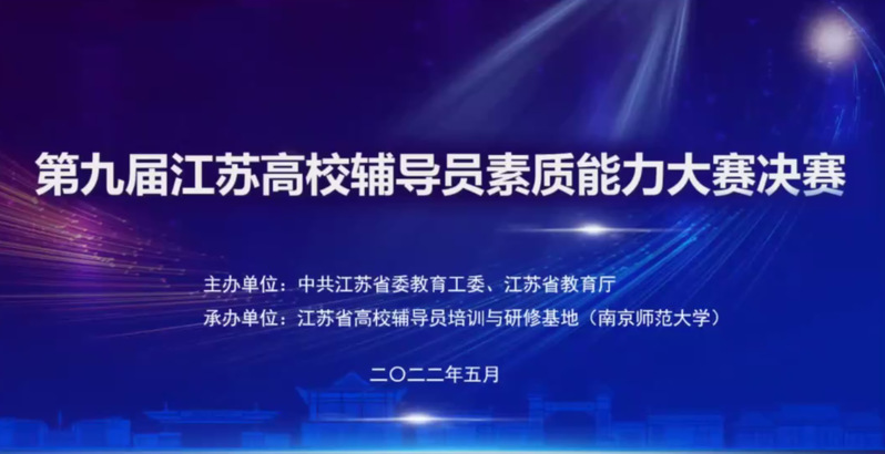 5月3日至4日,第九届江苏高校辅导员素质能力大赛决赛在南京师范大学举行。来自7个基地复赛选送的40名辅导员在线上参赛。我校汽车与交通学院辅导员吴惠玲荣获三等奖。
