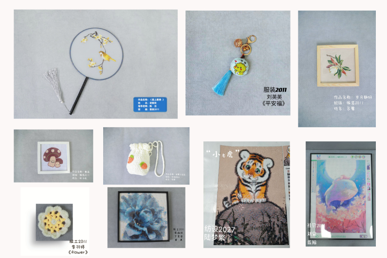 学校2022年职业教育活动周暨第八届纺织服装周之“巧手慧技艺,匠心织人生”云上作品展隆重开幕,我校已连续八年组织纺织服装周,此次展出的作品是纺织服装学院师生的课程设计和学生社团作品,涵盖刺绣、编织、抱枕、手工DIY等作品。