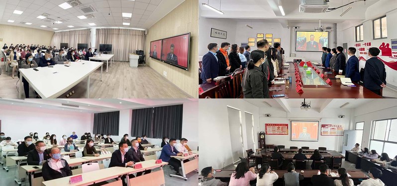 10月16日上午10时,中国共产党第二十次全国代表大会在北京人民大会堂开幕。习近平总书记代表第十九届中央委员会向大会作报告。学校党委领导班子全体成员,机关党总支、后勤党总支全体中层干部、党员,马克思主义学院、体育部、公共基础部全体党员在图文信息中心学术报告厅集中收看大会盛况。各二级学院组织师生党员和学生干部代表在本单位会议室共同收看,各班级也采取线上与线下相结合的方式组织同学们同步收看直播。