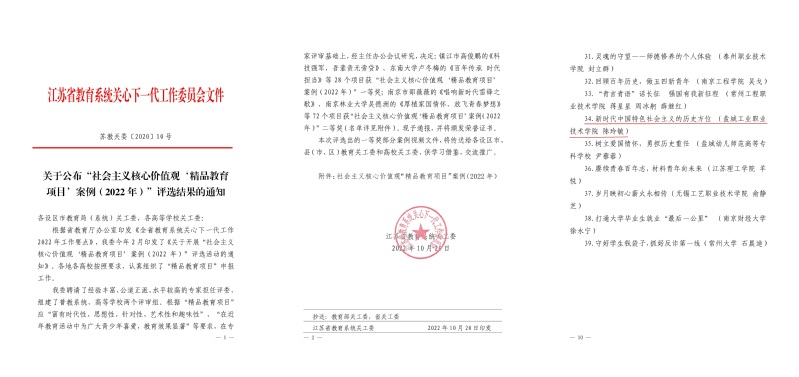 近年来,在学校党委的领导和关心下,校关工委提高政治站位、把牢工作方向,以立德树人为根本,以社会主义核心价值观为引领,紧紧围绕学校中心工作,不断加强关工委组织自身建设,深入开展了系列爱党爱国爱社会主义主题教育活动,深化关工委优质化建设均衡发展。今后,学校关工委将继续高举旗帜,发挥“五老”优势,勇担为党育人、为国育才的重大责任和光荣使命,为学校建设成为江苏省高水平高职学校贡献力量。