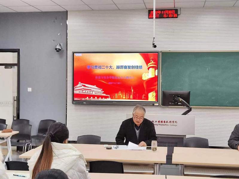 11月30日,信息与安全学院党总支在公共教学组团2301教室开展“学习贯彻二十大 踔厉奋发创佳绩”主题党日活动。信息与安全学院党总支全体党员参加活动,党总支书记陈瑜主持活动。