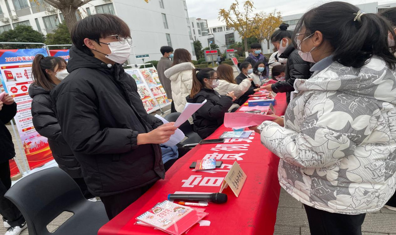 学校在南食堂广场精心布置了“学习宣传贯彻党的二十大精神,推动全面贯彻实施宪法”的横幅、海报及手抄报作品展板。通过发放宪法宣传册、讲解宪法知识、组织签名、趣味互动、知识问答等系列活动,营造了浓厚的学习氛围。各二级学院团总支还组织开展了“晨读宪法 学法先行”主题活动,同学们齐声朗读宪法条文,进行了庄严的宪法宣誓活动。