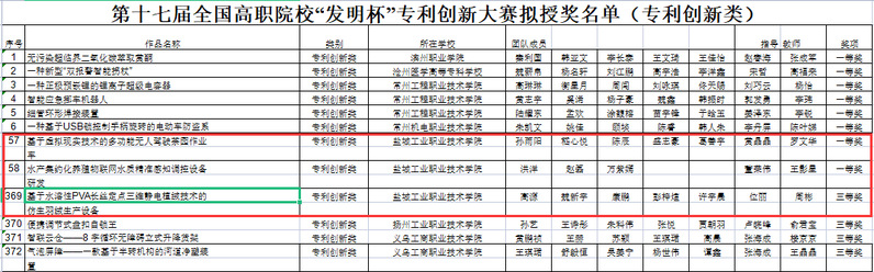 近日,第十七届全国高职院校“发明杯”大学生专利创新大赛圆满结束,学校取得了优异成绩。其中智能制造学院“水产集约化养殖物联网水质精准感知调控设备研发”和汽车与交通学院“基于虚拟现实技术的多功能无人驾驶茶园作业车”2个项目获一等奖。纺织服装学院“基于水溶性PVA长丝定点三维静电植绒技术的仿生羽绒生产设备”获三等奖。