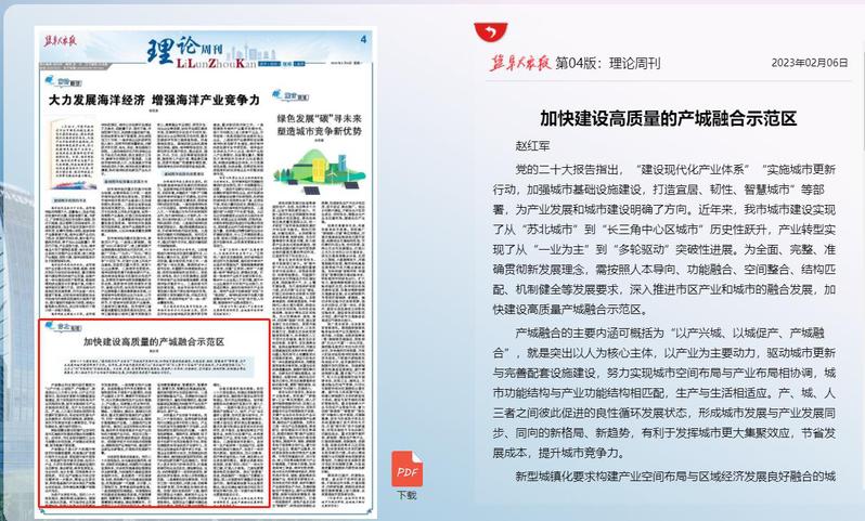 2月6日,《盐阜大众报》理论周刊版刊发了由我校纪委监察室、盐城产教融合发展研究中心研究员赵红军撰写的研究报告《加快建设高质量的产城融合示范区》。