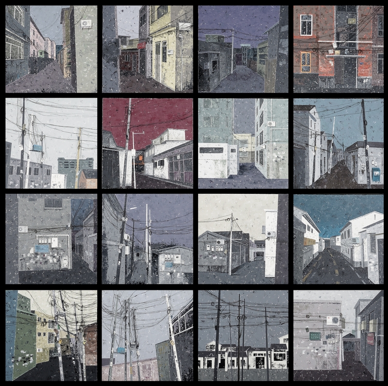 胡珞珞老师通过对物体的色彩感和画面的独特构思创作的一组作品《城市拾忆》,笔触清晰、画法直接,描绘了记忆中的老城模样,是对过去城市街景的一种追忆,具有典型的时代特征。