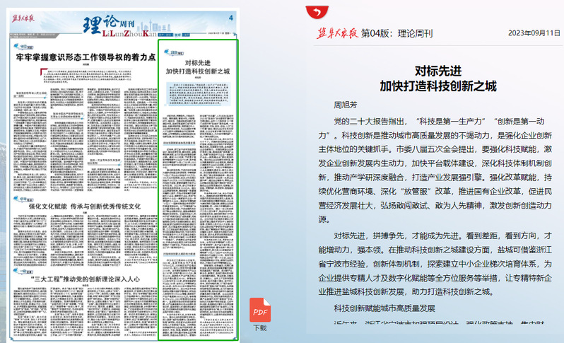 9月11日,《盐阜大众报》理论周刊版刊发了由我校盐城产教融合发展研究中心智库研究员、国际注册内部审计师、正高级会计师周旭芳执笔撰写的《对标先进 加快打造科技创新之城》。