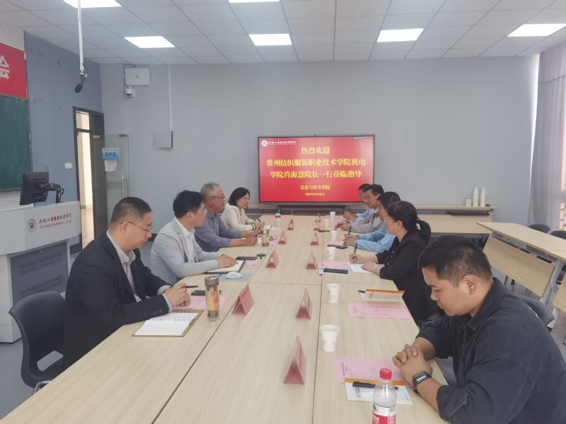 10月30日下午,常州纺织服装职业技术学院机电学院院长肖海慧一行来我校信息与安全学院开展调研。信息与安全学院党总支书记陈瑜、院长陈杰、党总支副书记徐春成以及相关专业负责人参加了交流会。徐春成主持会议。
