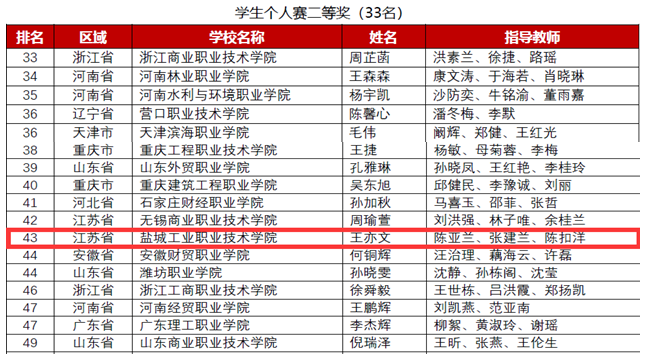 在本次国赛前夕,全国27个省、自治区、直辖市共712所院校73000多名学生参加各省组织的选拔赛,其中623所院校1066名学生入围了全国赛学生个人赛的决赛。经江苏省教育厅批准,由江苏省高校图工委高职高专图书馆建设专业委员会主办的江苏赛区选拔赛于11月12日上午举行,来自全省51所高职院校的238名选手参加了激烈地角逐。我校5位参赛选手脱颖而出,智能制造学院电气2311班王亦文同学、药品与健康学院药管2111班王九州同学、信息与安全学院大数据2211班杨文杰同学荣获了大赛一等奖。智能制造学院电气2311班方铭友同学荣获了大赛二等奖。经贸管理学院酒店2331班王涛同学荣获了大赛三等奖。其中,王亦文和杨文杰两名同学获得了参加国赛的资格。