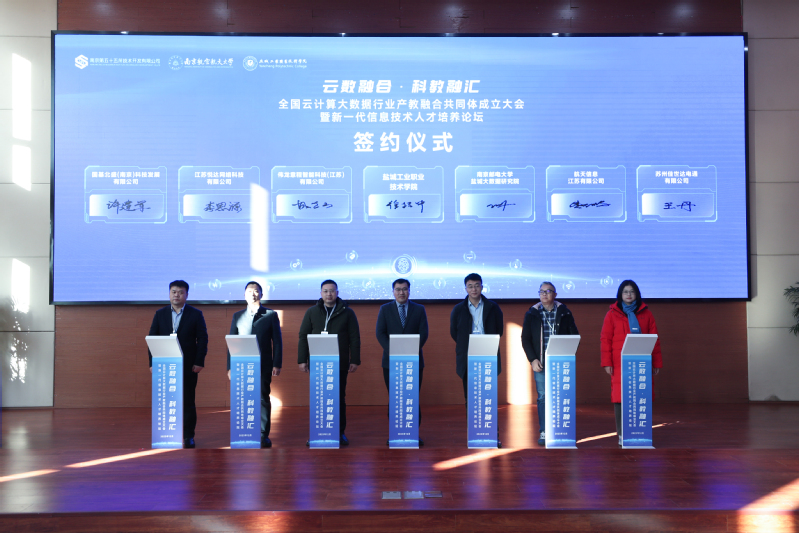 全国云计算大数据行业产教融合共同体由南京第五十五所技术开发有限公司、南京航空航天大学、盐城工业职业技术学院三家单位牵头,旨在通过资源共享、优势互补,推动云计算大数据行业发展和数字经济建设,进一步促进“政行企校”多元协同,实现云计算大数据行业和教育的全方位合作。