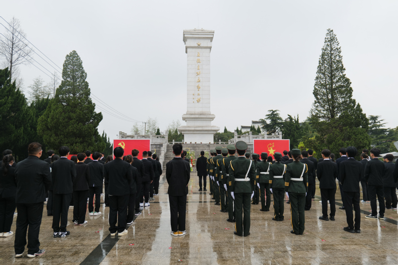 在革命纪念碑前,全体师生列队肃聆听祭文,向革命烈士敬献花圈、默哀致敬,顾平为师生们讲述了陵园的由来和发展历程。同学们重温了入团誓词。祭扫仪式后,大家来到新四军一军纪念馆、革命烈士纪念馆参观学习。顾平对纪念馆中成列的烈士遗物,粟裕将军生前书信、珍贵物件等一一介绍,师生们仿佛回到了那个战火纷飞、硝烟弥漫的革命年代,深刻感受到“革命理想高于一切”的高尚情怀。