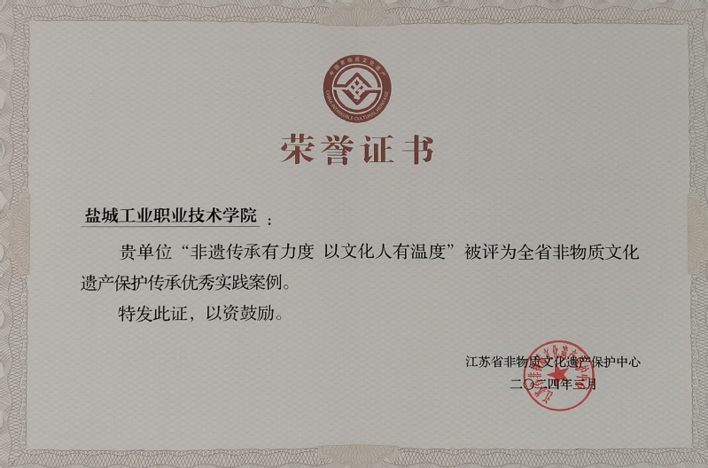 近年来,学校认真贯彻习近平总书记对宣传思想文化工作作出重要指示精神,推动中华优秀传统文化创造性转化、创新性发展,把“三植”办学理念融入非遗传承创新,实现盐城非物质文化遗产传承与现代职业教育体系建设的深度融合。