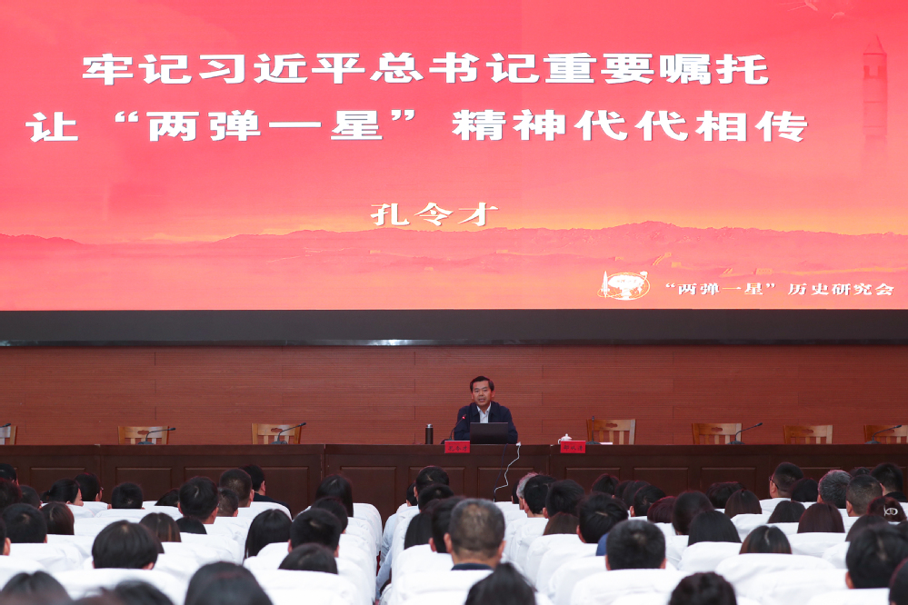 孔令才从“两弹一星”精神是什么、为什么、怎么做三个问题切入,从“两弹一星”精神源自于伟大的历史使命、彰显伟大的民族品格、折射伟大的人生追求、照亮伟大的复兴之路等方面展开论述。通过讲述一个个发生在戈壁滩上的动人故事,生动地展示出老一辈科技工作者热爱祖国、无私奉献、自力更生、艰苦奋斗、大力协同、勇于攀登的精神,阐释了“两弹一星”精神的时代背景、丰富内涵和深刻意义。报告主题鲜明、条理清晰,具有强大的感染力,是一堂生动的思想政治课、一场触及灵魂的思想洗礼课。